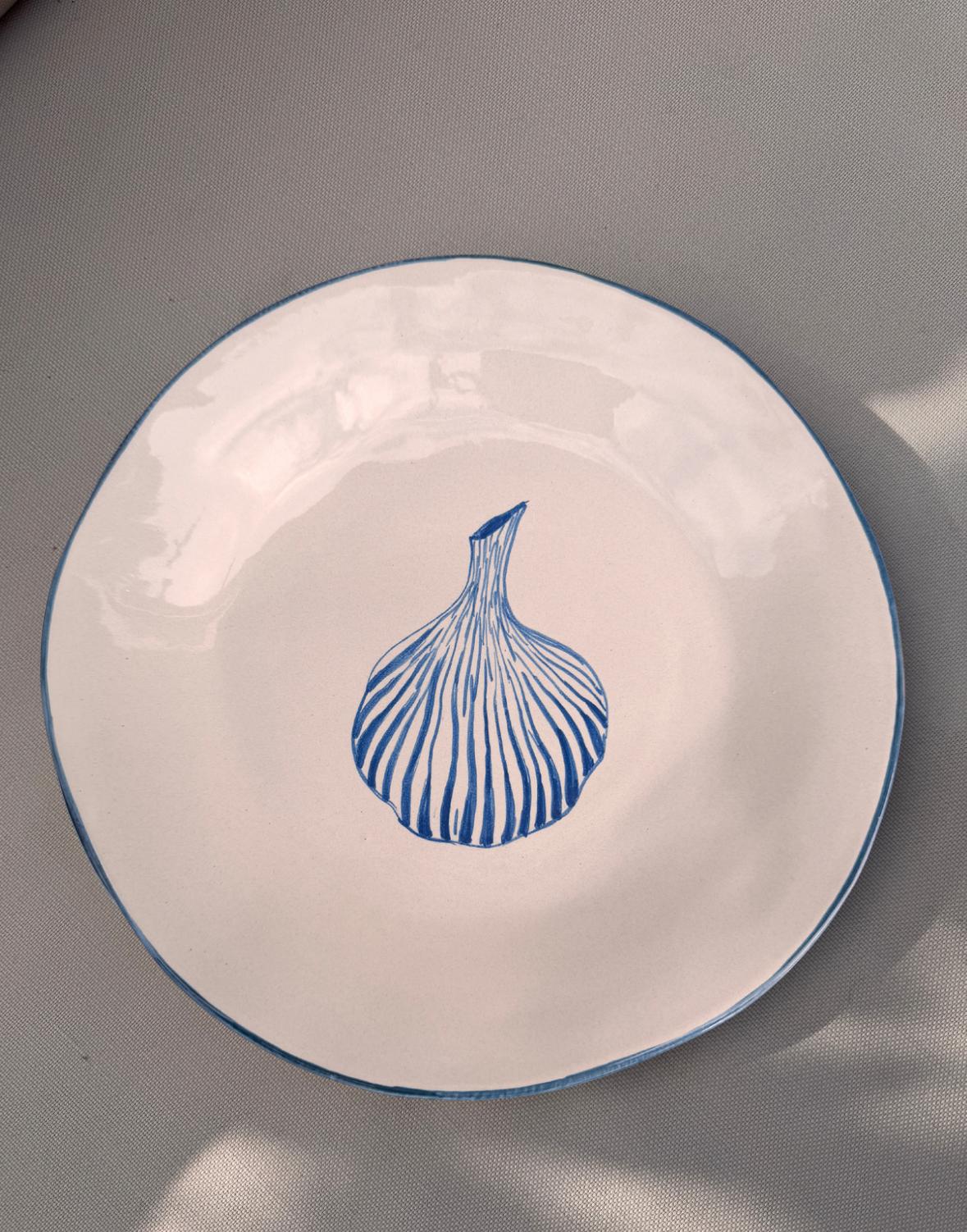 Large irregular Garlic plate with blue border