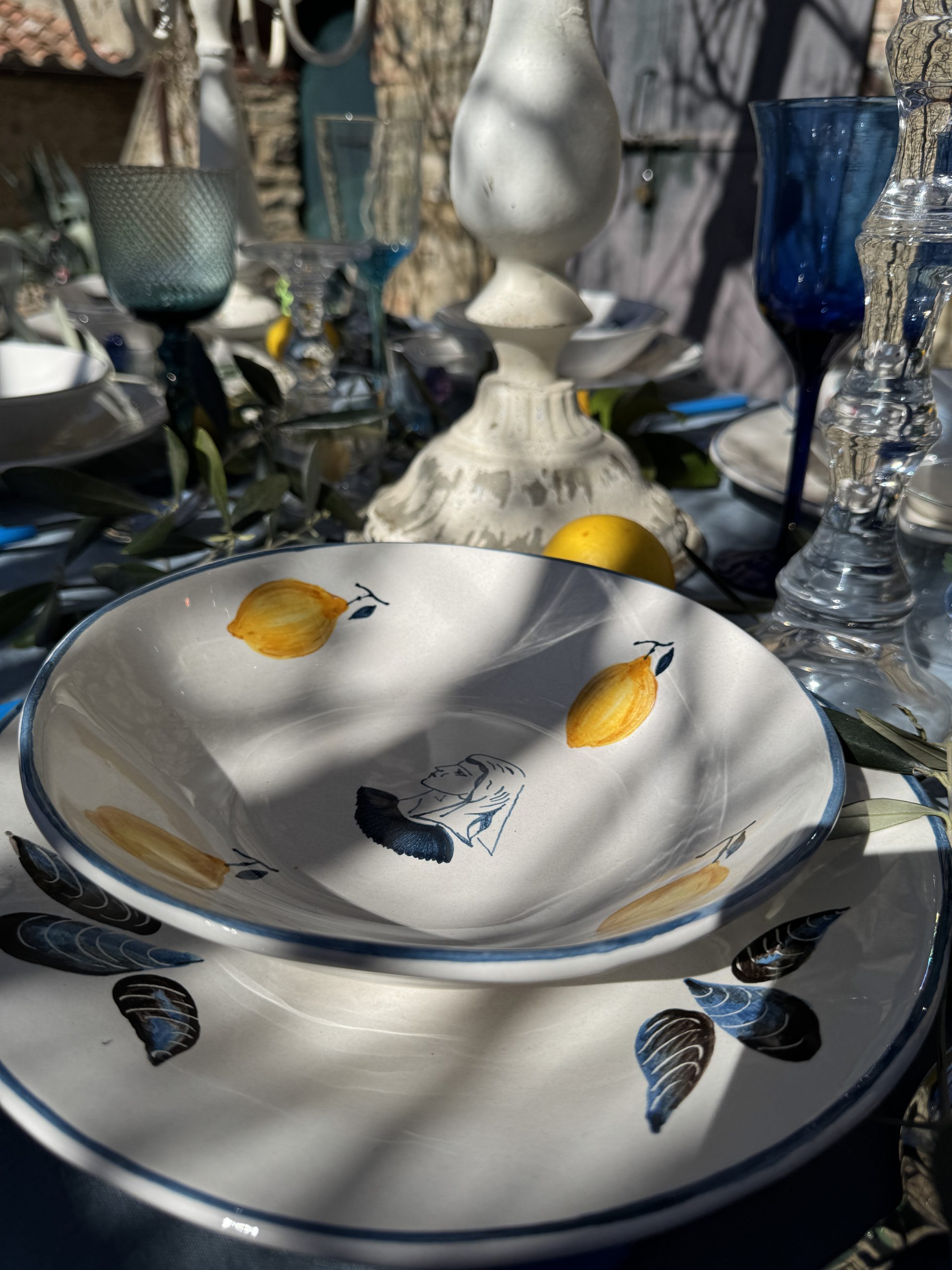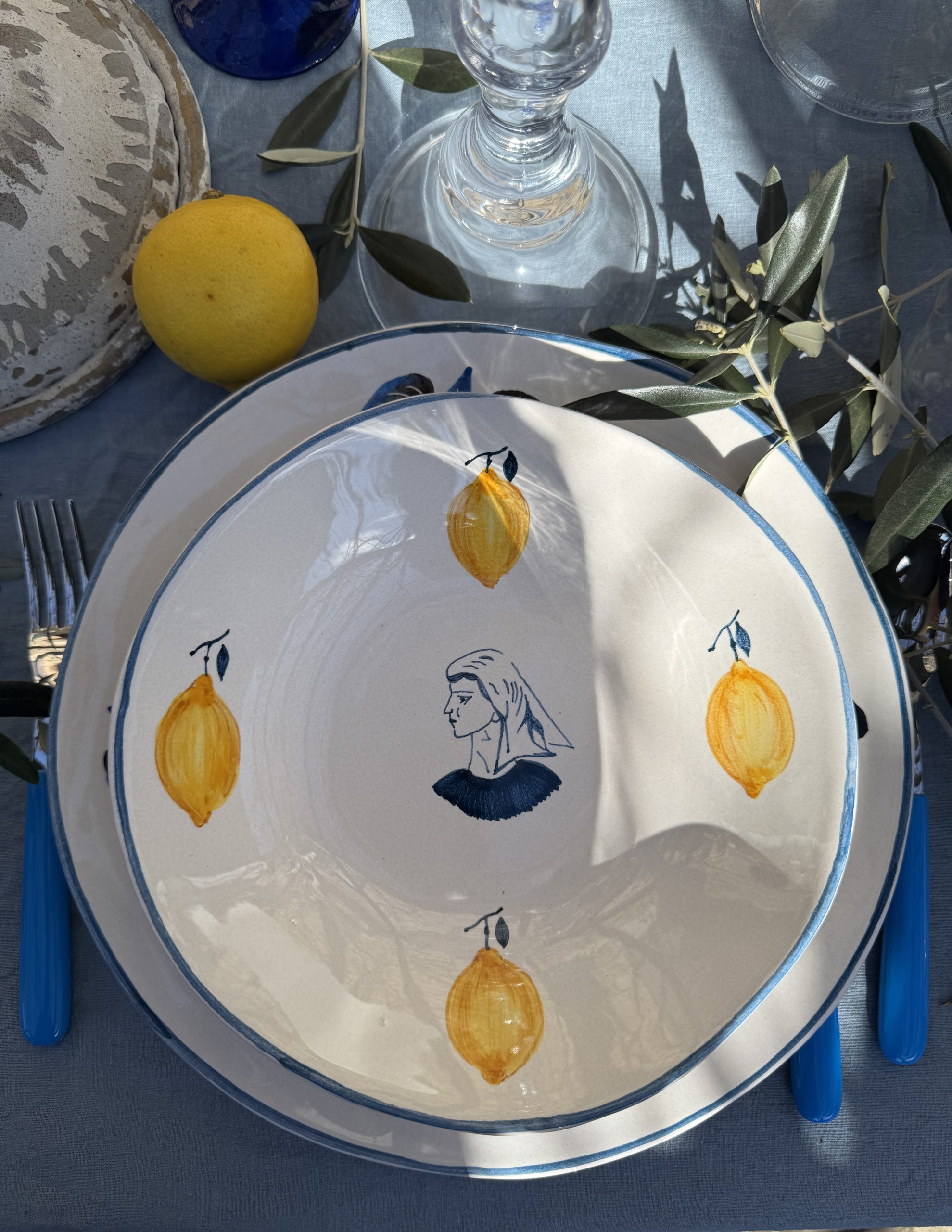 On this plate symbols such as lemons create a poetic Mediterranean composition.